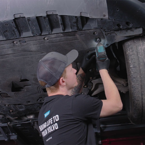 2. Ta bort motorskyddet under bilen. Det är fastsatt med Torx-30 skruvar och ett klips i mitten.