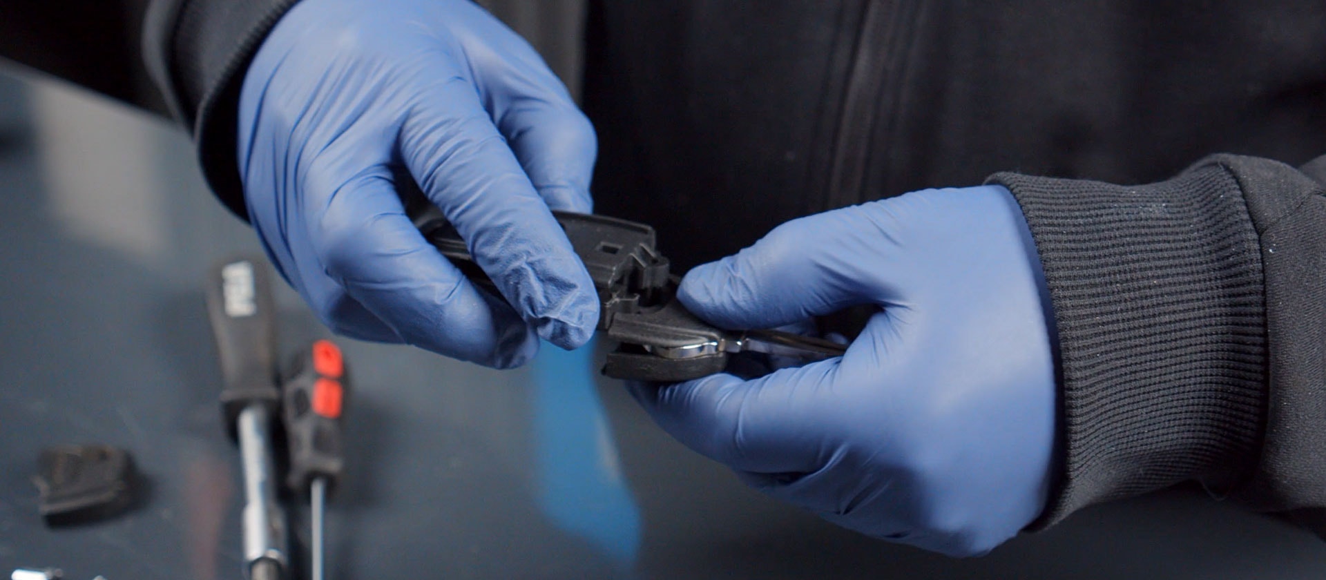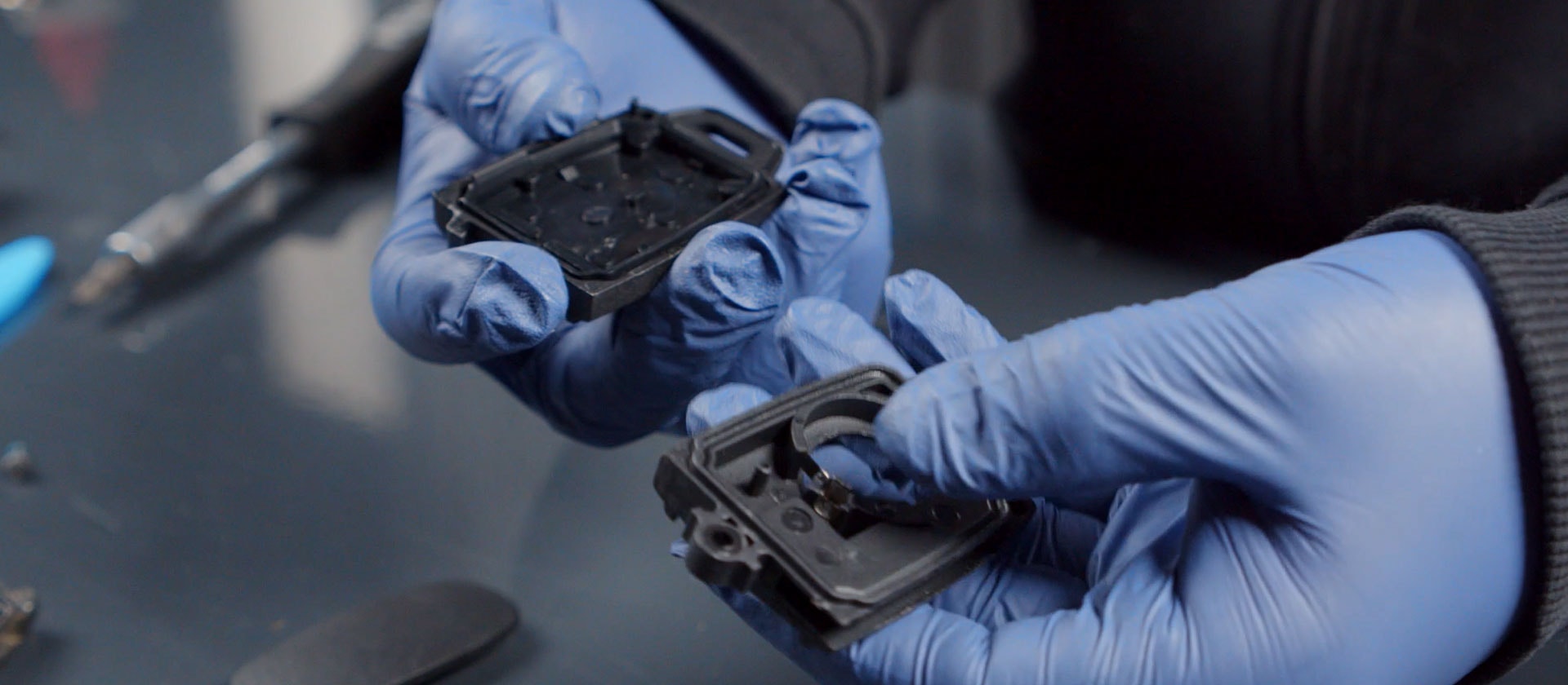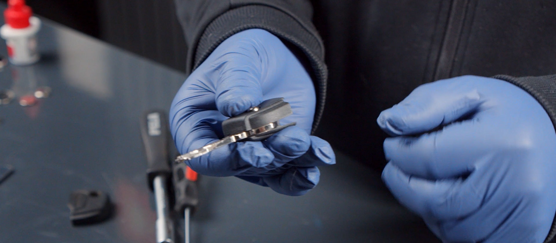 Dela på delen där nyckelbladet sitter, Den är limmad så du behöver bryta upp med en skruvmejsel eller försiktigt såga isär det.