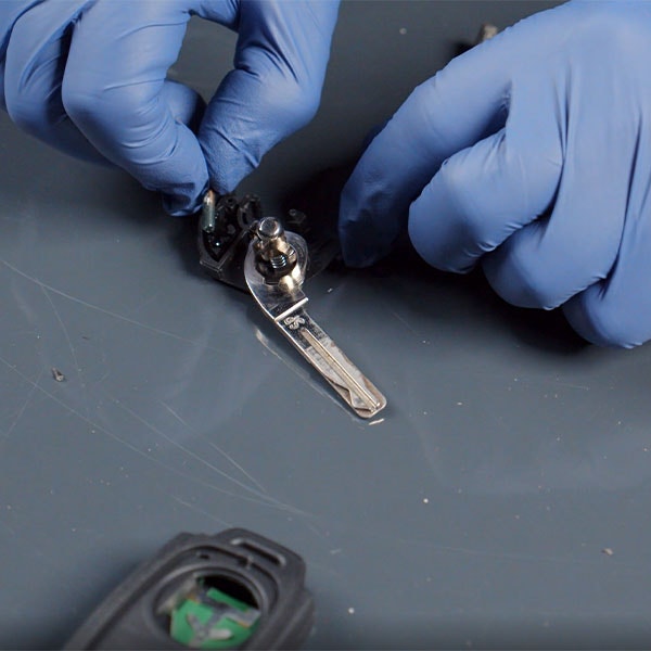 Montera det gamla nyckelbladet i det nya skalet, detta kan vara lite pilligt för att få fjädern i spänning.
