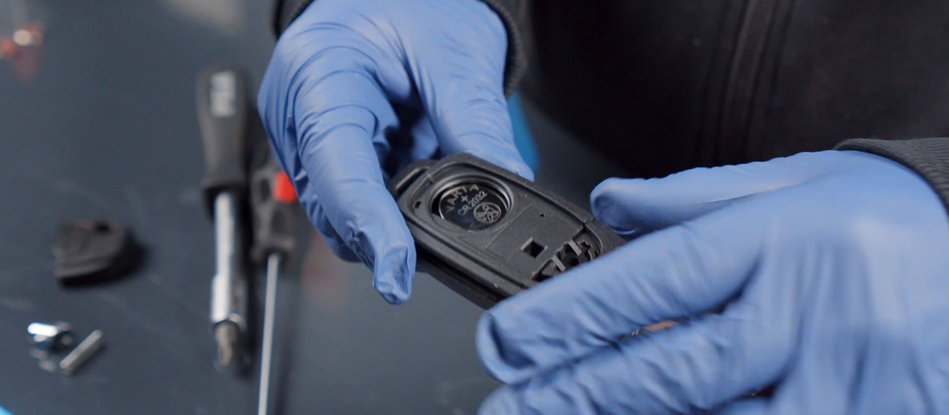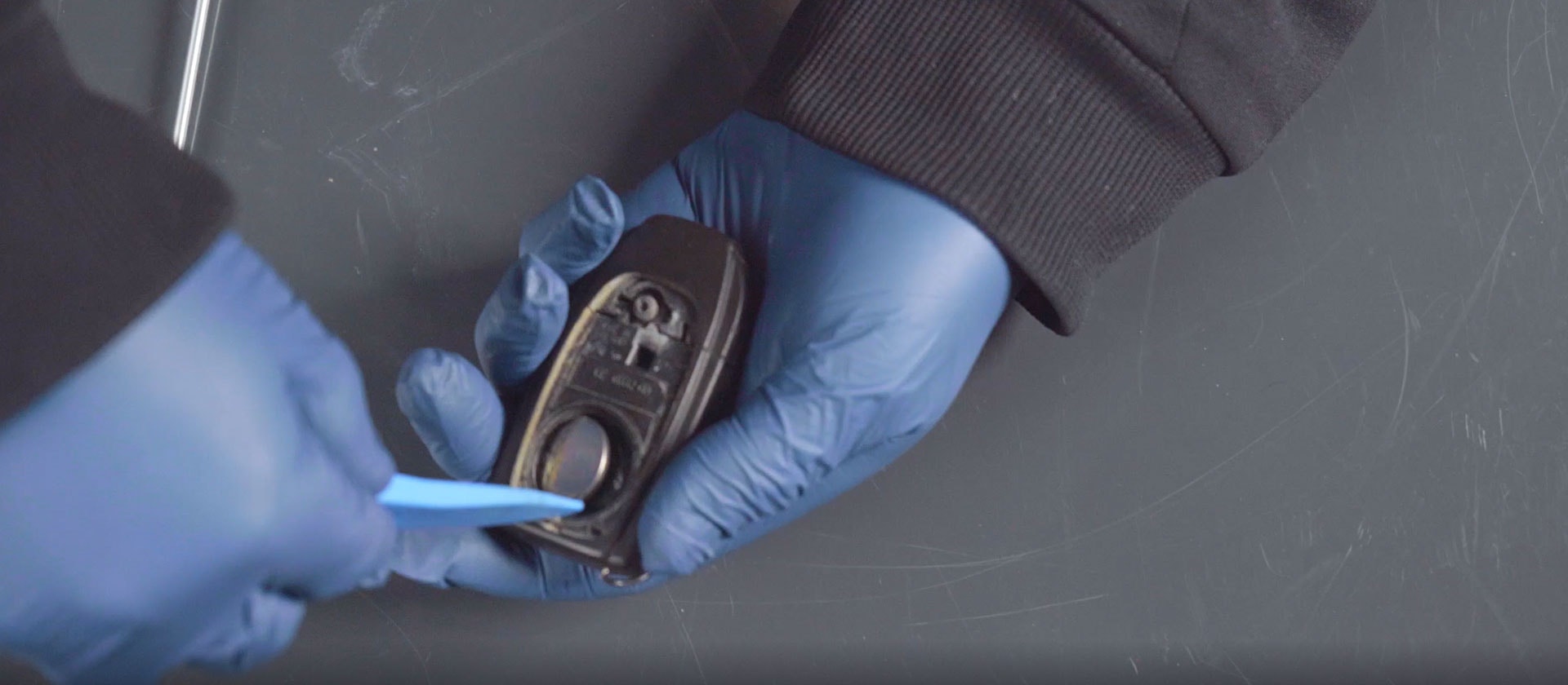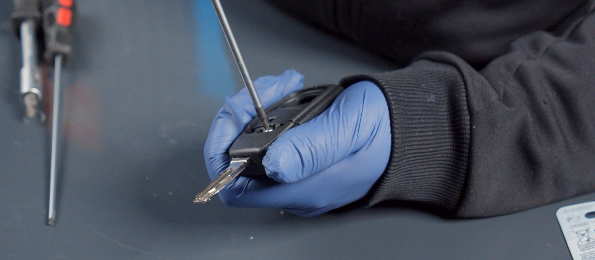 Öppna luckan på baksidan av nyckeln, tryck in en skruvmejsel i glipan och vik upp locket.
