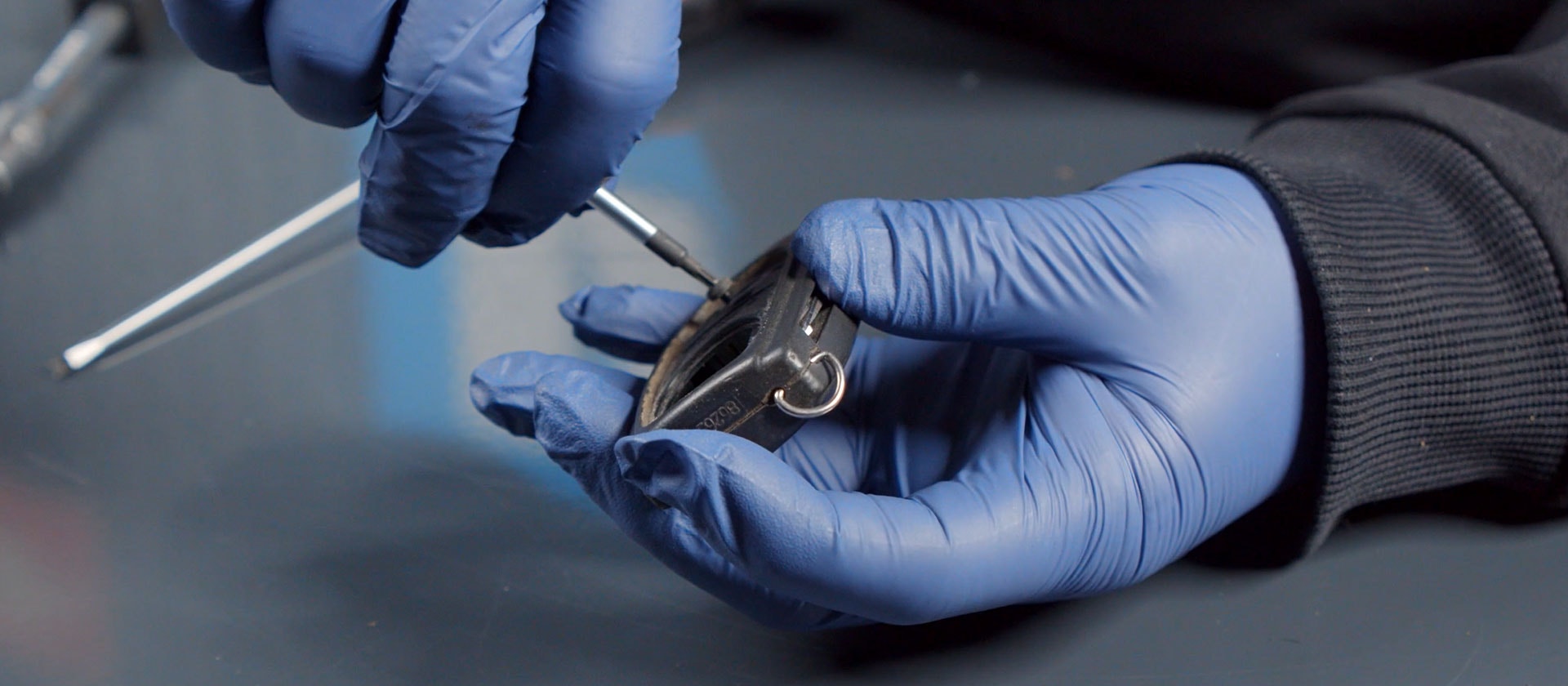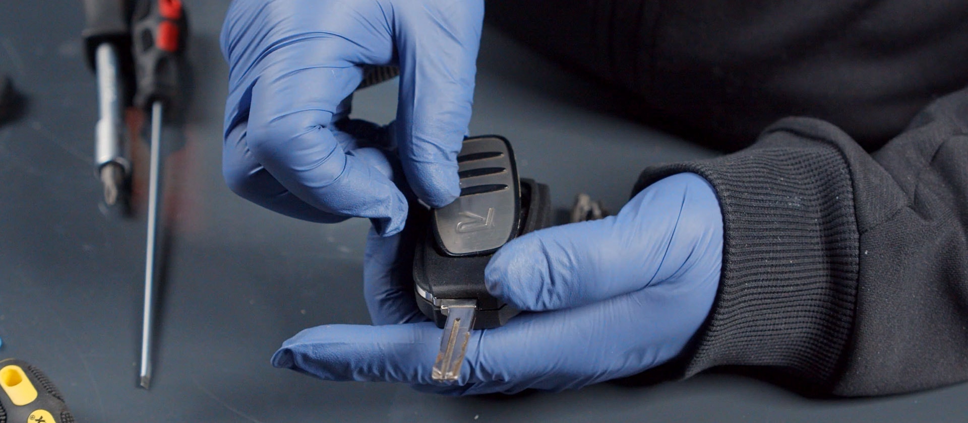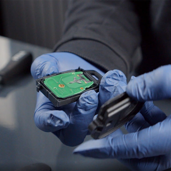 Öppna luckan på baksidan av nyckeln, tryck in en skruvmejsel i glipan och vik upp locket.