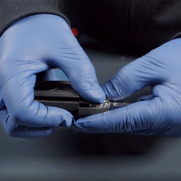 Lägg lim i skåran på det nya skalet och lägg sedan i chippet.