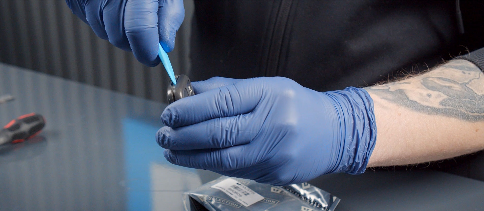 På ovansidan av nyckel skalet finns det ett mellanrum där du ska bryta med ett verktyg för att öppna.