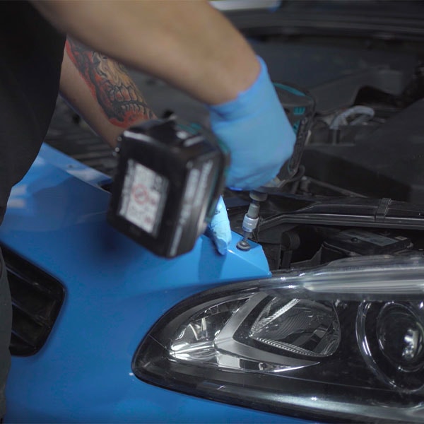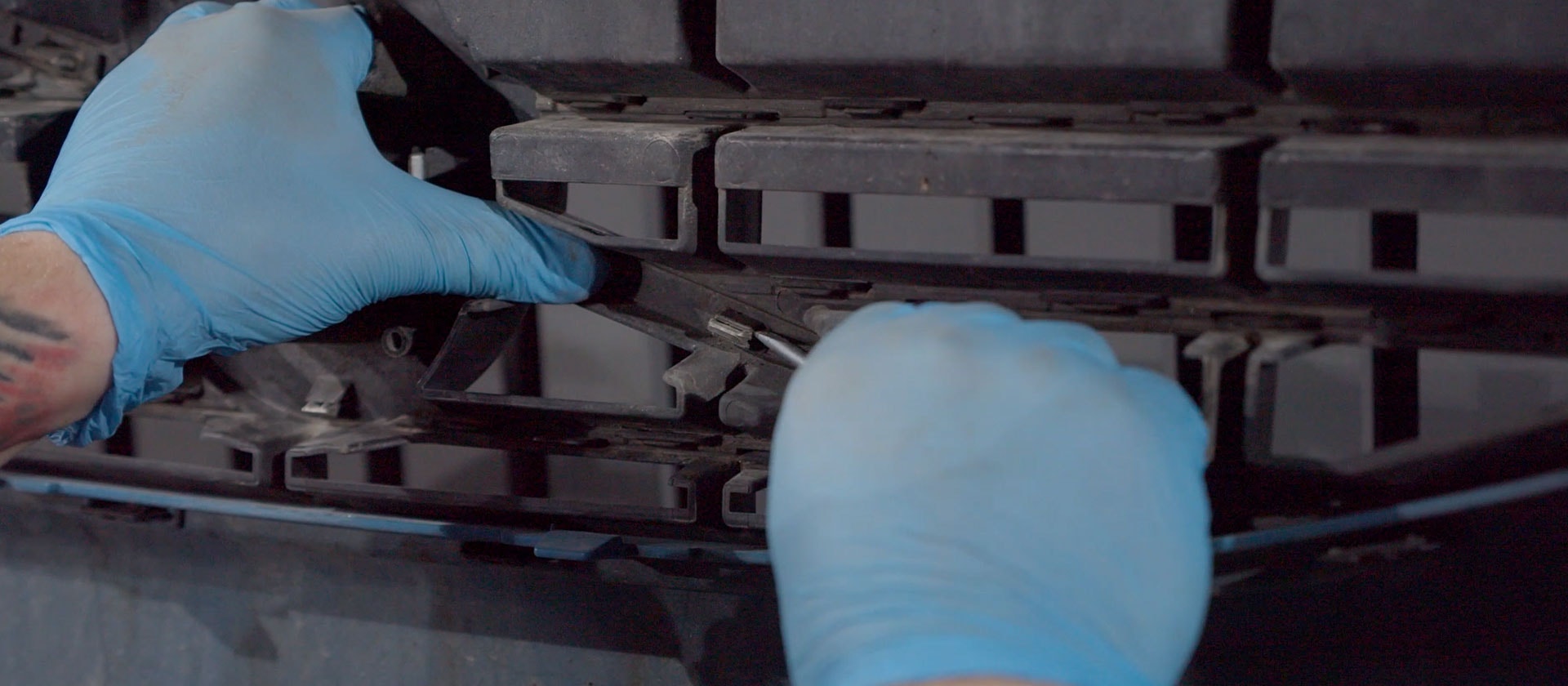 4. Sätt tillbaka stötfångaren. (TIPS! Skruva ner skruvarna i toppen en bit för att hålla den på plats.)