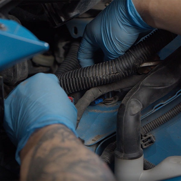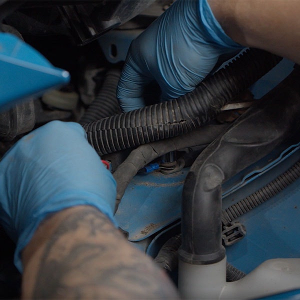 Ta tag i spolarslangen mot vänstra spolarmunstycket till lyktan och dra försiktigt den rakt ner så den släpper.