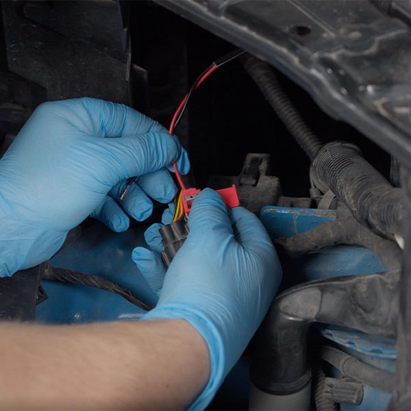 1. Dra kablaget från stagen genom en lämplig väg in i motorutrymmet.