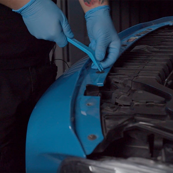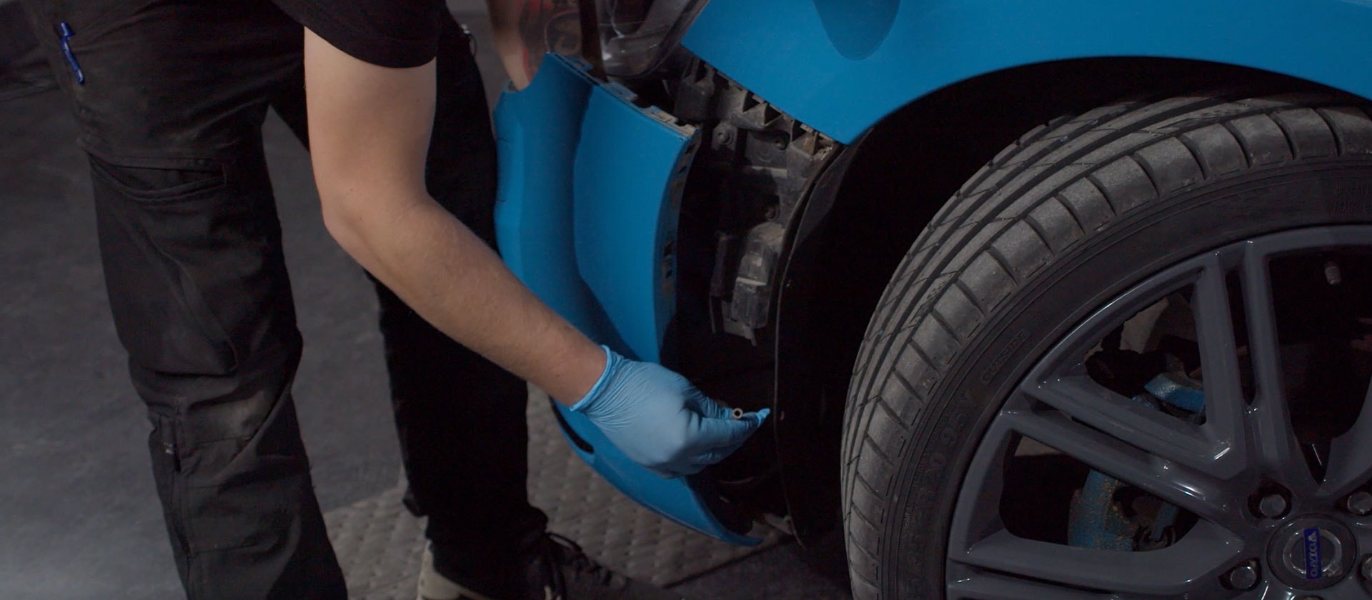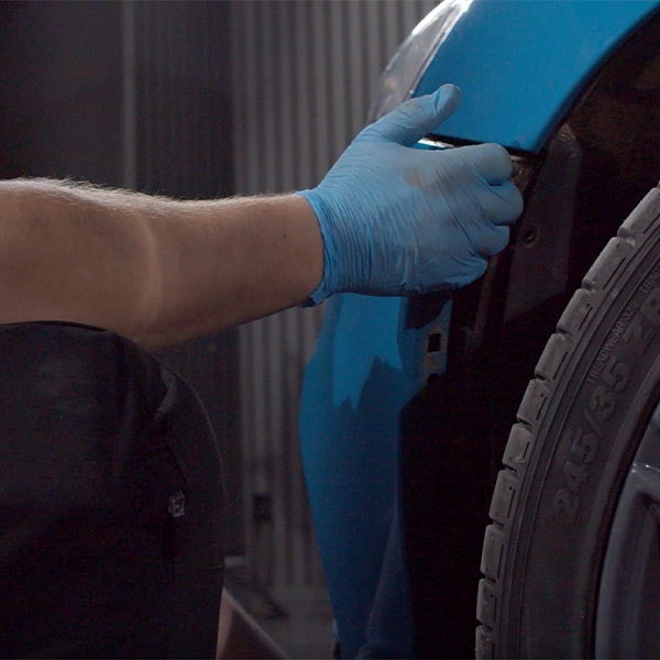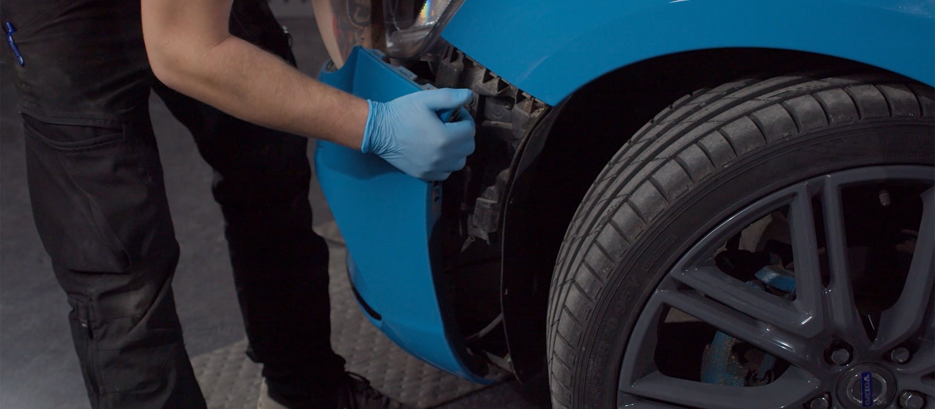 Dra ut kanterna på stötfångaren som möter framskärmen och hjulhuset.