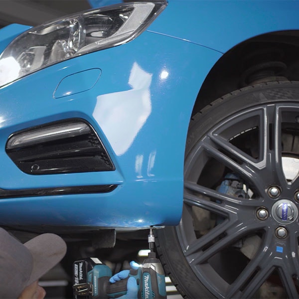 Skruva loss de tre nedre skruvarna i hjulhuset mot stötfångaren och alla skruvarna under stötfångaren som håller luftstyrningen. (Torx 25)