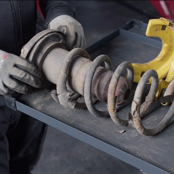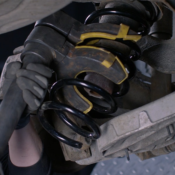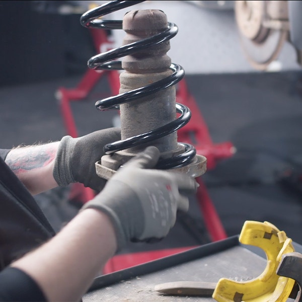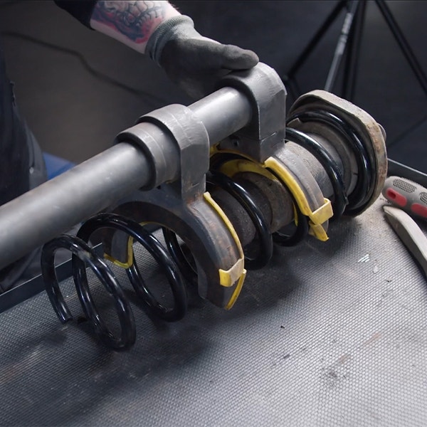Använd en fjäderkompressor för att komprimera fjädern och ta sedan ut den.