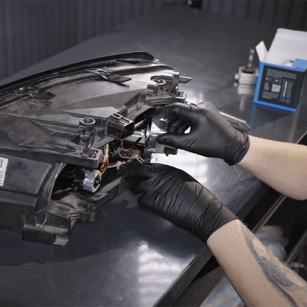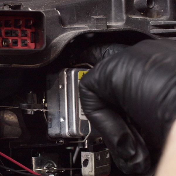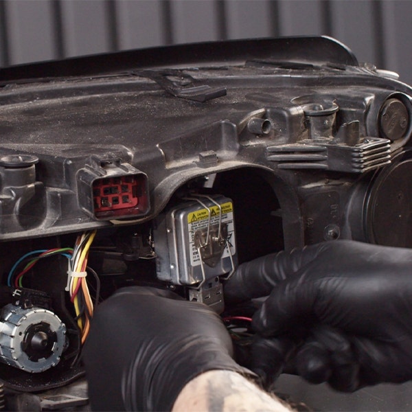 Lossa kontaktstycket som är anslutet till strålkastaren. Genom att göra detta, kan du enkelt fortsätta med processen att byta ut lampan.