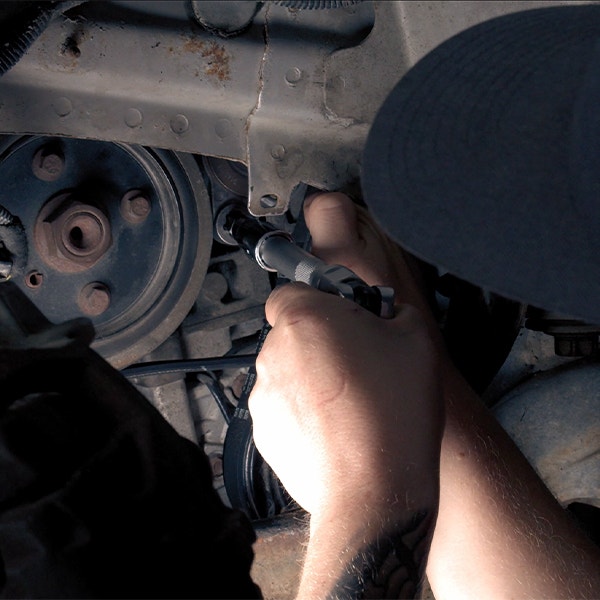 Byt om det börjar låta illa från remspännaren men också på intervall, det är rekommenderat att byta remspännare i samma veva. Går multiremmen av finns det risk att den går in i kamremmen och förstör motorn.