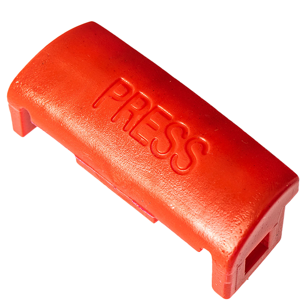 Knapp för bälteslås till Volvo 240, 740, 940, 850. Detta är plastknappen som sitter på bälteslåset, för att spänna upp säkerhetbältet. Passar alla med knapp enligt bilden.