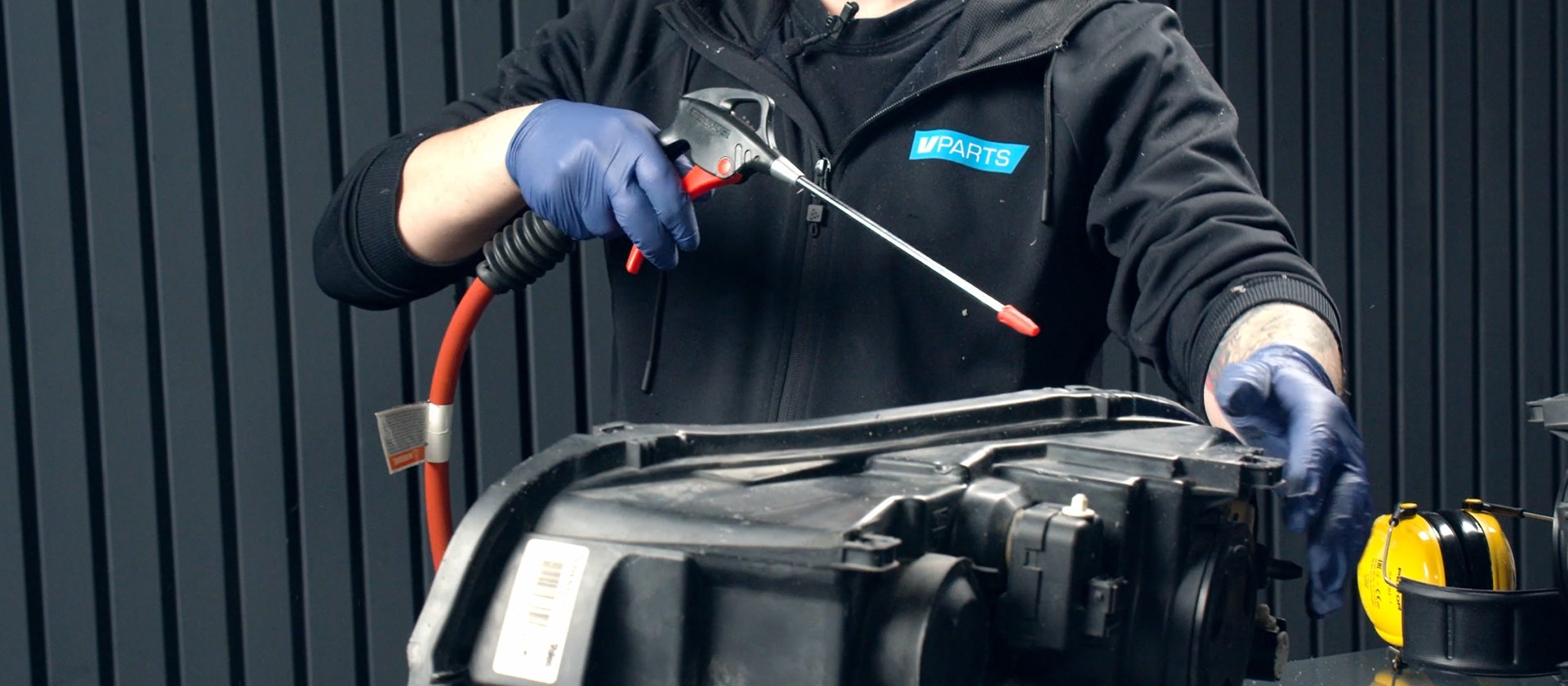 Verktyg och utrustning som du behöver för bytet: Dremel, Hörselskydd, handskar, munskydd och skyddsglasögon, värmepistol,  tänger, avbitare och raka mejslar, mikrofiberdukar, spännband, skruvstäd och lim.