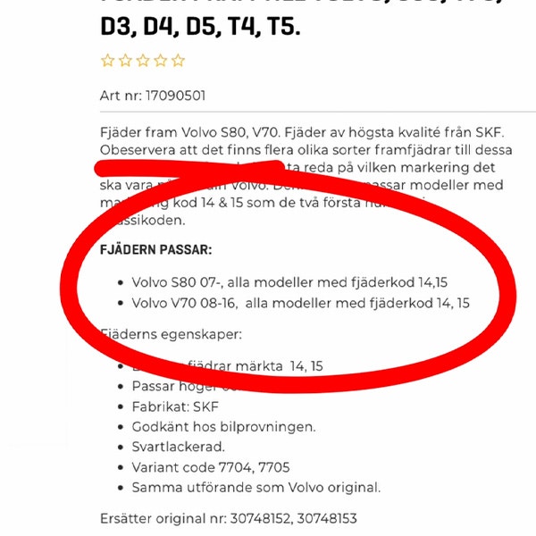 I produktbeskrivningen kan du enkelt hitta vilken fjäder som passar din Volvo!