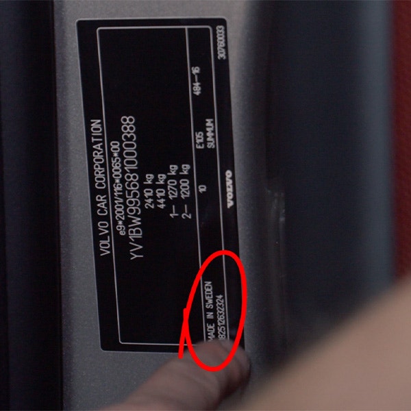Bilden nedan visar vart du hittar chassikoden på din Volvo: