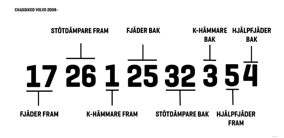 För att hitta rätt fjädrar så har vi gjort en fusklapp där du kan avkoda chassikoden för just din Volvo.