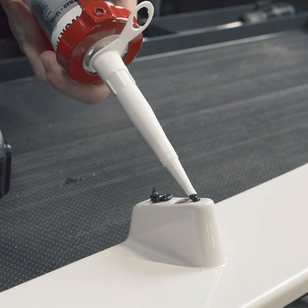 Dags för mittendelen! Vi rekommenderar att du lägger lim för att det ska hålla bättre. Vi använder oss av svart lim från Wurth.