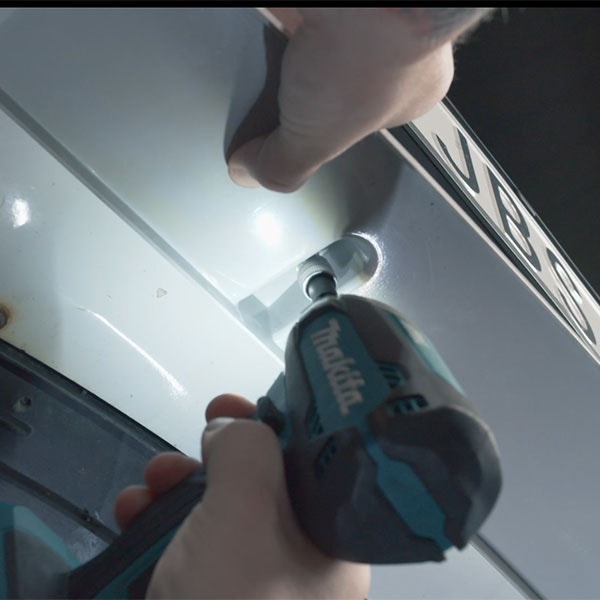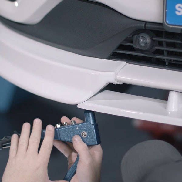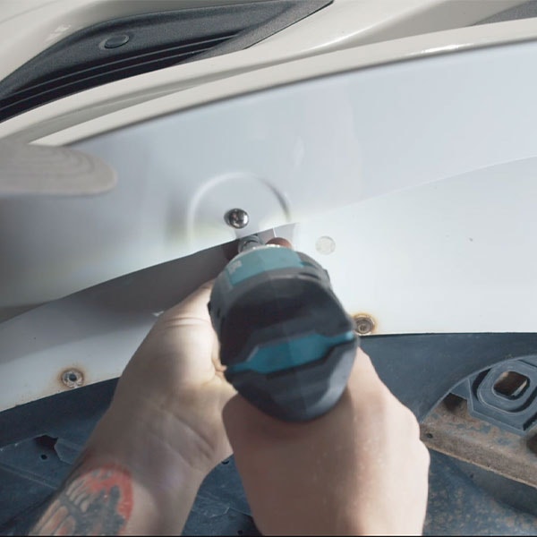 Skruva in den medföljande självborrande skruven på bilens sida. Upprepa på den andra sidan.