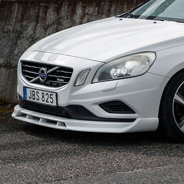 3 delad add-on läpp till Volvo V60 och S60, 10-13, R-design, innan facelift. Ger din Volvo en mer aggressiv framtoning, samtidigt som den behåller de stilrena linjerna som är typiska för Volvo. Tillverkad i ABS-plast med enkel montering i luftstyrningens originalskruvar under stötfångaren.