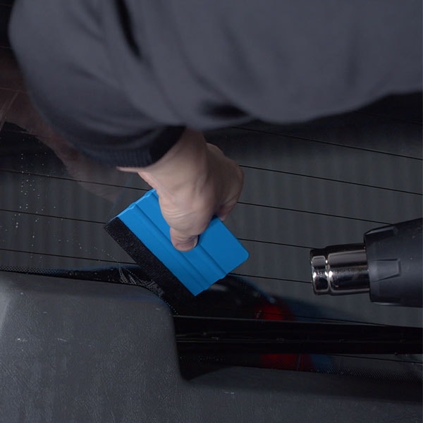 Då de flesta volvomodeller har konvexa rutor och då behövs solfilmen värmas för att forma sig efter rutan. Detta görs medan filmen är monterad på utsidan. Använd en värmepistol eller hårtork för att värma solfilmen så att den formar sig efter bilrutan. Använd skrapan som ingår i paketet för att trycka ut luftbubblor och väck som blir när filmen drar ihop sig av värmen. Detta moment kräver noggrannhet och tålamod.