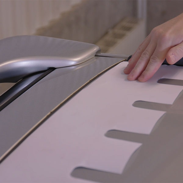1. När du får hem ditt paket med takskyddsribbor följer det med mallar som hjälper dig att placera ribborna korrekt på taket. Börja med att klippa ut dessa mallar enligt anvisningarna i paketet. Det är viktigt att du har verktyg som en tapetlinjal, butyltejp och isopropanol för att rengöra ytan innan montering.
