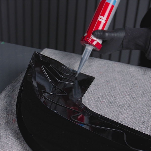Använd ett starkt svart lim (som finns tillgängligt i vår webbshop) på de områden där vingen ska fästas.