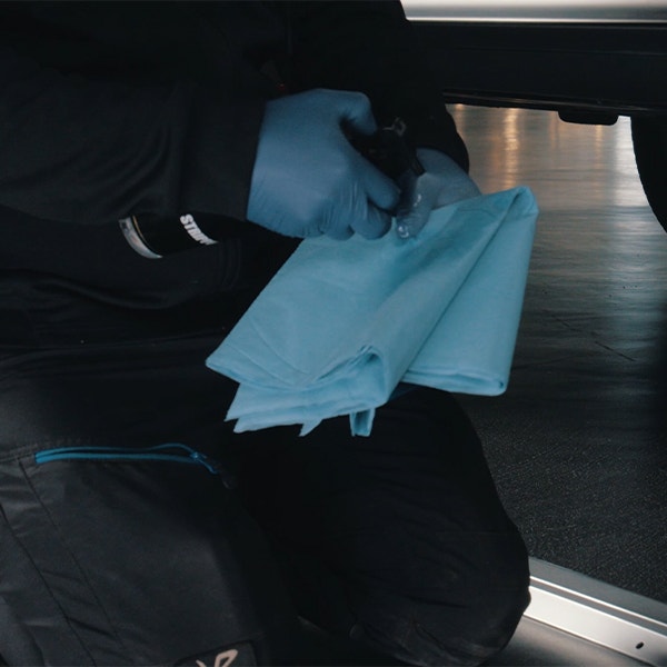 Rengör ytan där den dubbelhäftande tejpen ska sitta. Vi använder isopropanol för att rengöra ytan.