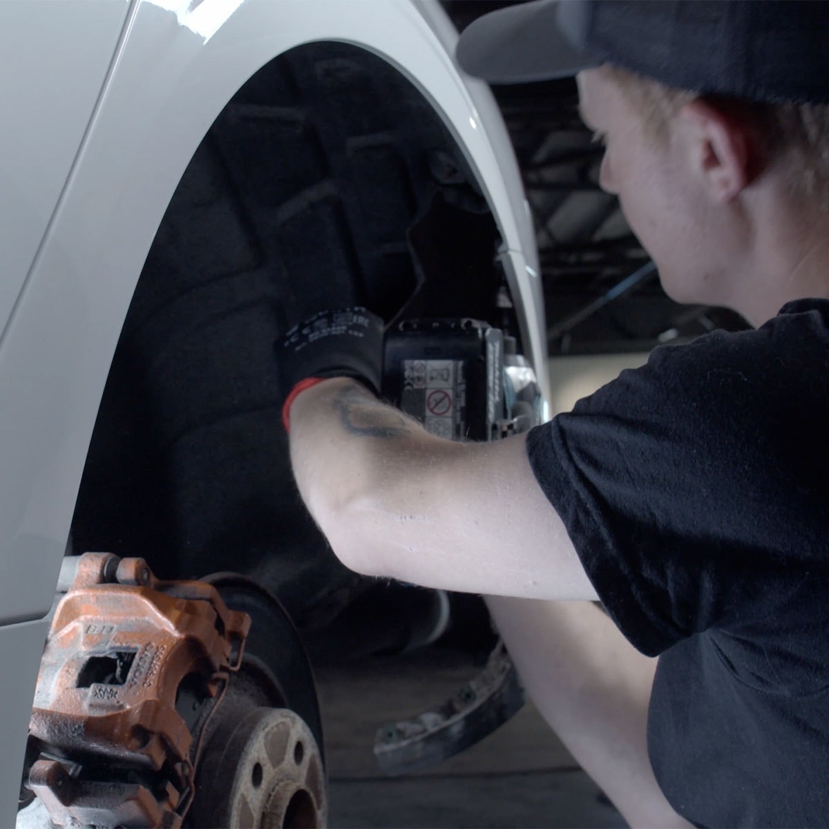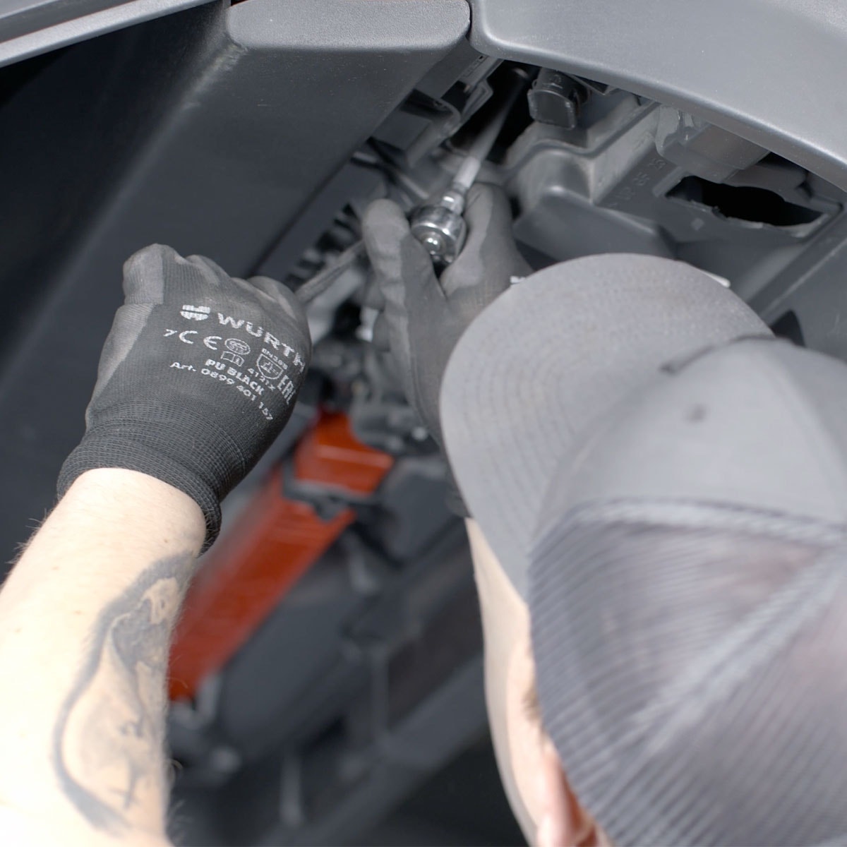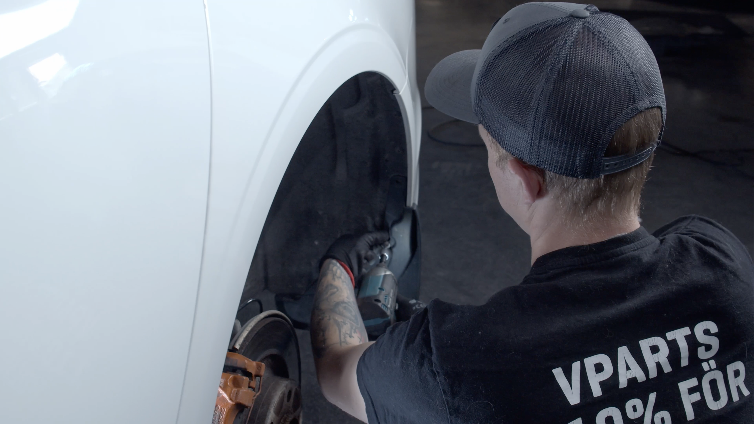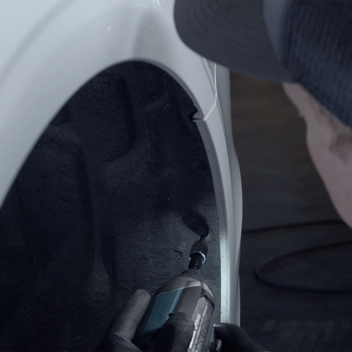 Använd en Torx T30-skruvmejsel för att lossa skruvarna som håller stötfångaren på plats. Dessa inkluderar skruvarna på insidan av hjulhuset och under stötfångaren. Lossa försiktigt på muttertycket till stötfångaren enligt videon och dra den åt sidan för att skapa utrymme.