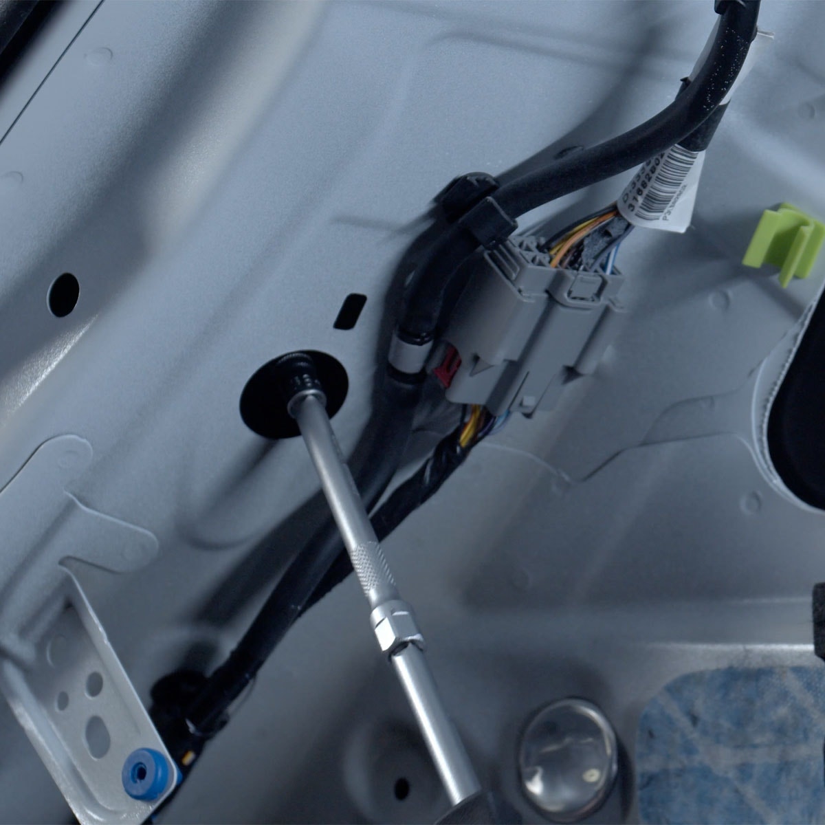 För att komma åt de inre skruvarna, ta bort de plastpaneler som sitter i vägen. Använd en 10 mm hylsnyckel för att lossa de två inre skruvarna. Var försiktig så att du inte skadar några plastklämmor.