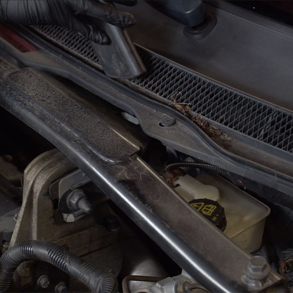 Dammsugning: Börja med att dammsuga bort löv och annat skräp från motorutrymmet. Detta steg är viktigt för att undvika att skräpet fastnar under rengöringen.