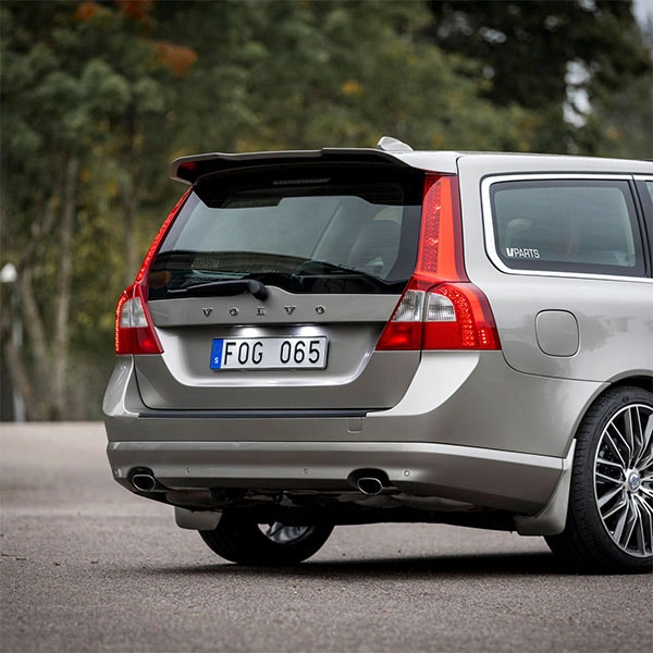 V70 och XC70 ser nakna ut utan takspoiler och vi har två olika modeller: en som liknar originalet och en stylingvinge som är inspirerad av de nyare Volvo-modellerna. Stylingvingen ger ett litet uppåtlut och förlänger taket, vilket bidrar till ett sportigare utseende. Dessutom är de väldigt prisvärda och enkla att montera.