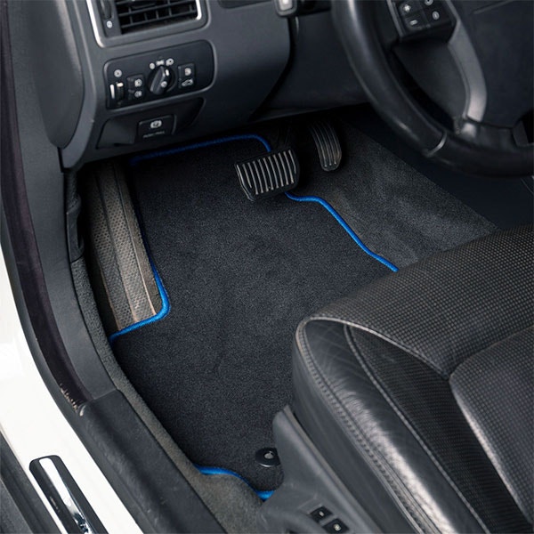 Det första du ser när du öppnar bildörren är golvmattorna. Ett par snygga tygmattor med gummibotten, som dessa med den lilla flaggan, gör ett väldigt fint intryck och höjer bilens interiörstandard.